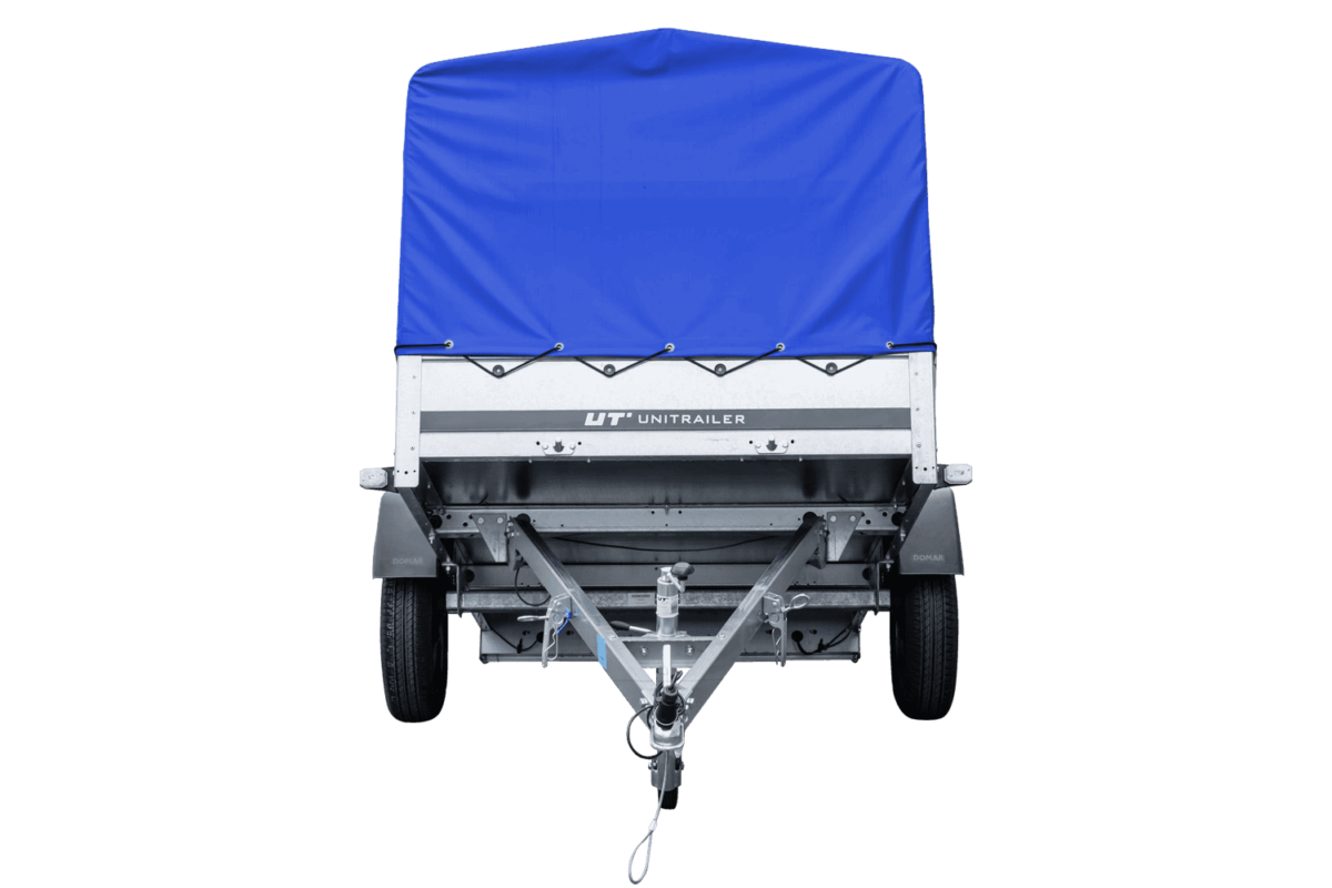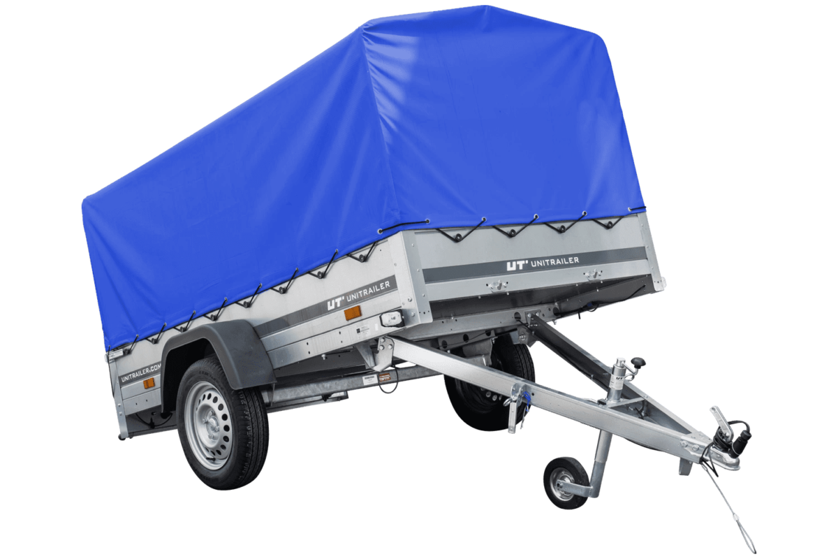 Anhænger 150 TIP 150×106 cm [med blå høj presenning, bøjler og støttehjul]