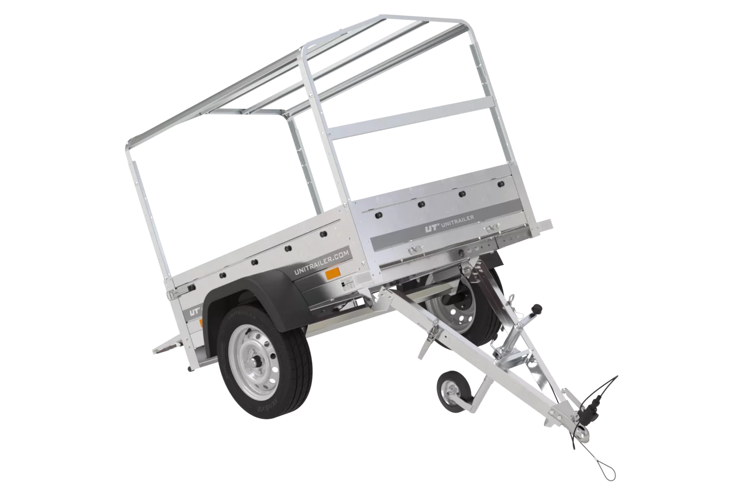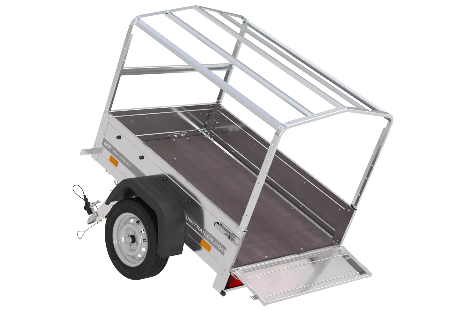 Anhængeren er fremstillet i galvaniseret stål, hvilket sikrer fremragende korrosionsbeskyttelse og lang levetid – selv ved maksimal totalvægt på 750 kg. Ladefladestørrelse: 150×106.