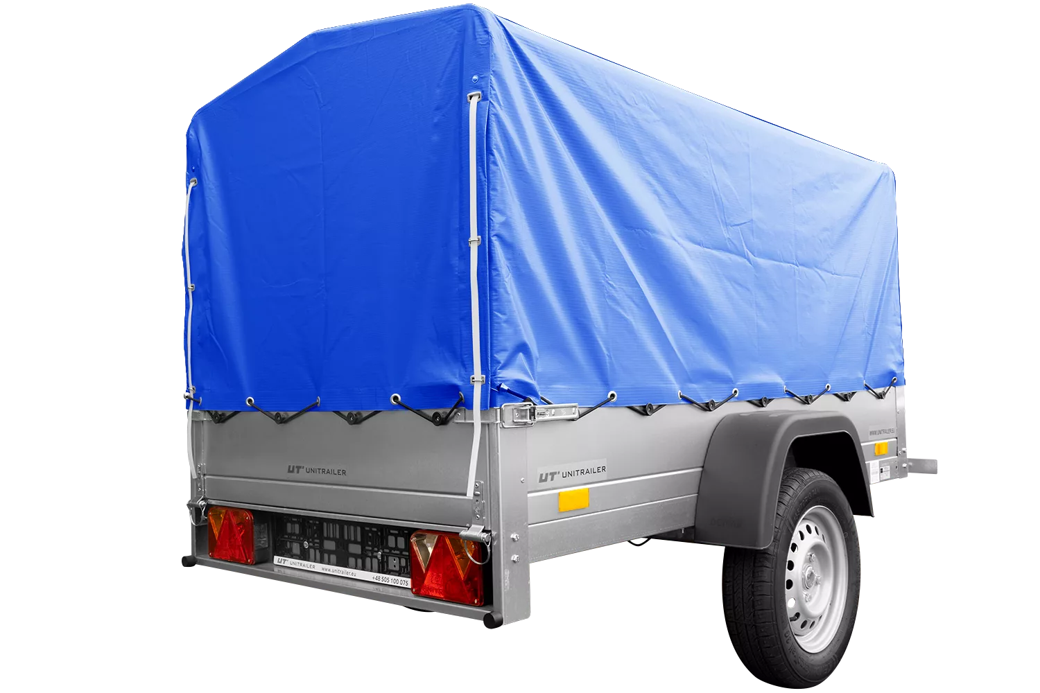 Anhænger med presenning Havetrailer 201 TIP [med støttehjul, blå høj presenning og bøjler]