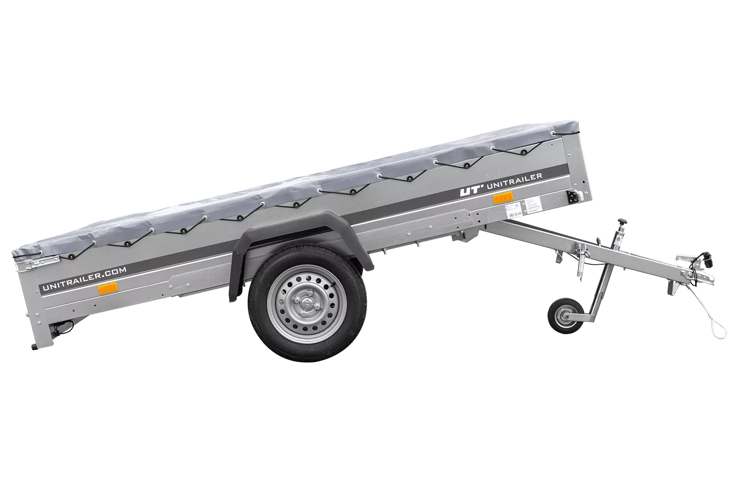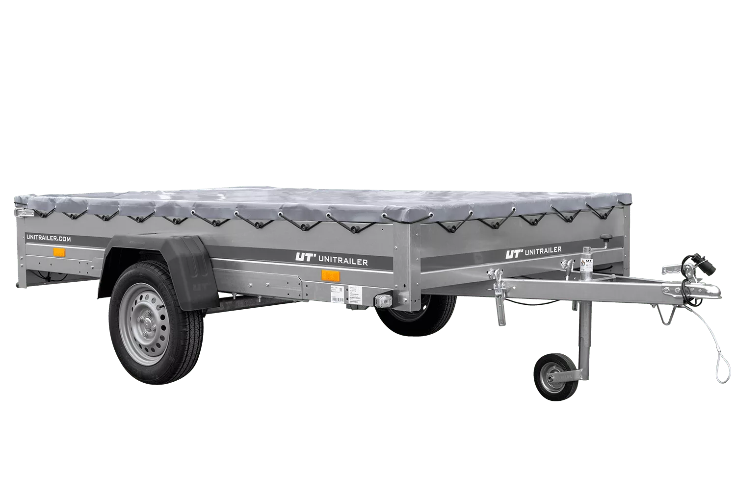 Anhængeren er fremstillet i galvaniseret stål, hvilket sikrer fremragende korrosionsbeskyttelse og lang levetid – selv ved maksimal totalvægt på 750 kg. Ladefladestørrelse: 264×150.