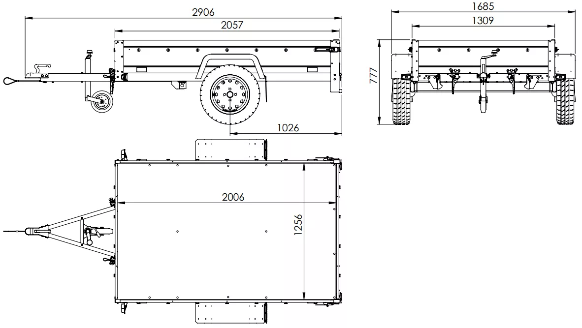 Anhængeren er fremstillet i galvaniseret stål, hvilket sikrer fremragende korrosionsbeskyttelse og lang levetid – selv ved maksimal totalvægt på 750 kg.